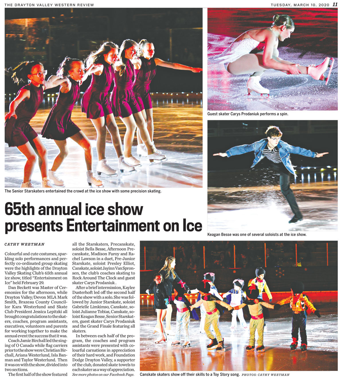 • 65th annual ice show presents Entertainment on Ice by Cathy Weetman, Drayton Valley Western Review