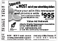 • The benefits of a display ad but at the low cost of a classified ad, appears in all Alberta & NWT member newspapers